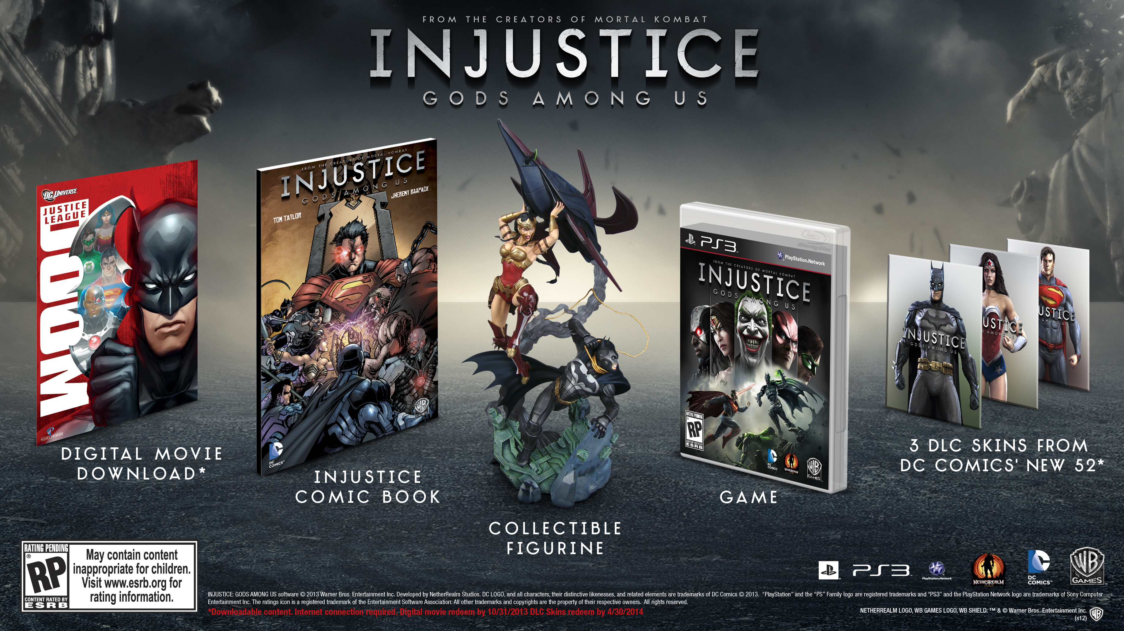 The Collector’s Edition of Injustice: Gods Among Us will sell for $99.99 and will include a copy of the game, a digital download of the DC Animated Film Doom, a three pack of DLC costumes for Superman, Batman and Wonder Woman based off of their DC New 52 designs, an Injustice comic and a statue of Wonder Woman and Batman in combat exclusive to this collector’s pack.