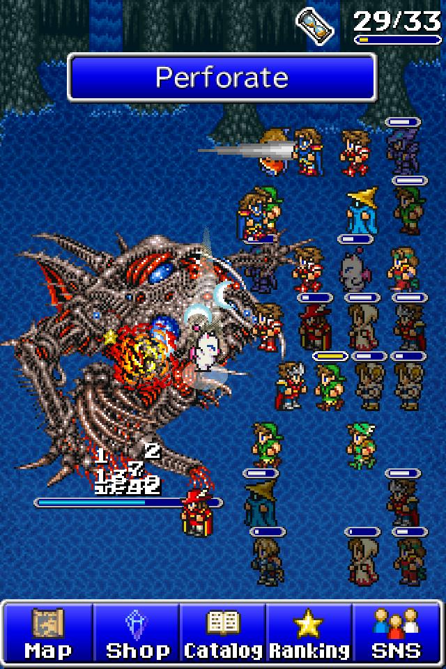 Download FF: ATB for $3.99. The first thing you’d notice is that you aren’t allowed to pick your targets and effectively each squad member only has one health each. Also, each character has only one specific attack which is activated by tapping or swiping over them in the game screen when their meter has filled up. This means that as long as a player keeps moving their finger across the screen, they’ll hit characters by default and continue the battle without even needing to look. As you unlock more characters, you don’t even get to decide the makeup of your party as it is totally random. One battle you may have 3 warriors and the next you may have none. So strategy completely goes out the window.