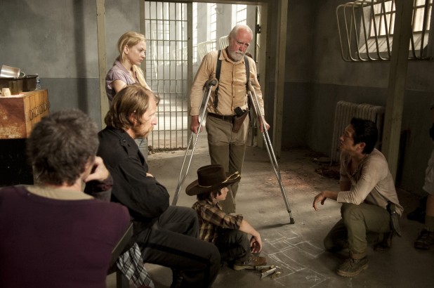 Carl is showing Glenn where Tyreese’s group entered the prison, so they can try and figure out where the breach is. Glenn is enraged and wants to just go over to Woodbury and kill The Governor himself. Herschel tries to calm him down, and they instead get into an argument over whether to hold ground at the prison or leave. Glenn is getting angrier and angrier, and taking a bigger responsibility role within the group.