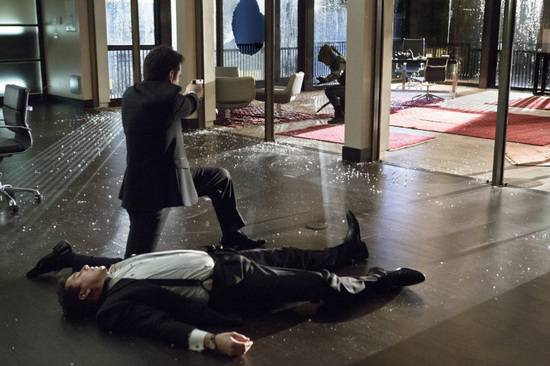 Malcolm kills two men as he and Tommy are going to the safe room. Malcolm explains that the room is bulletproof and on a completely different power grid. Deadshot shoots out one of the bulletproof windows from a nearby roof. He shoots Malcolm multiple times.