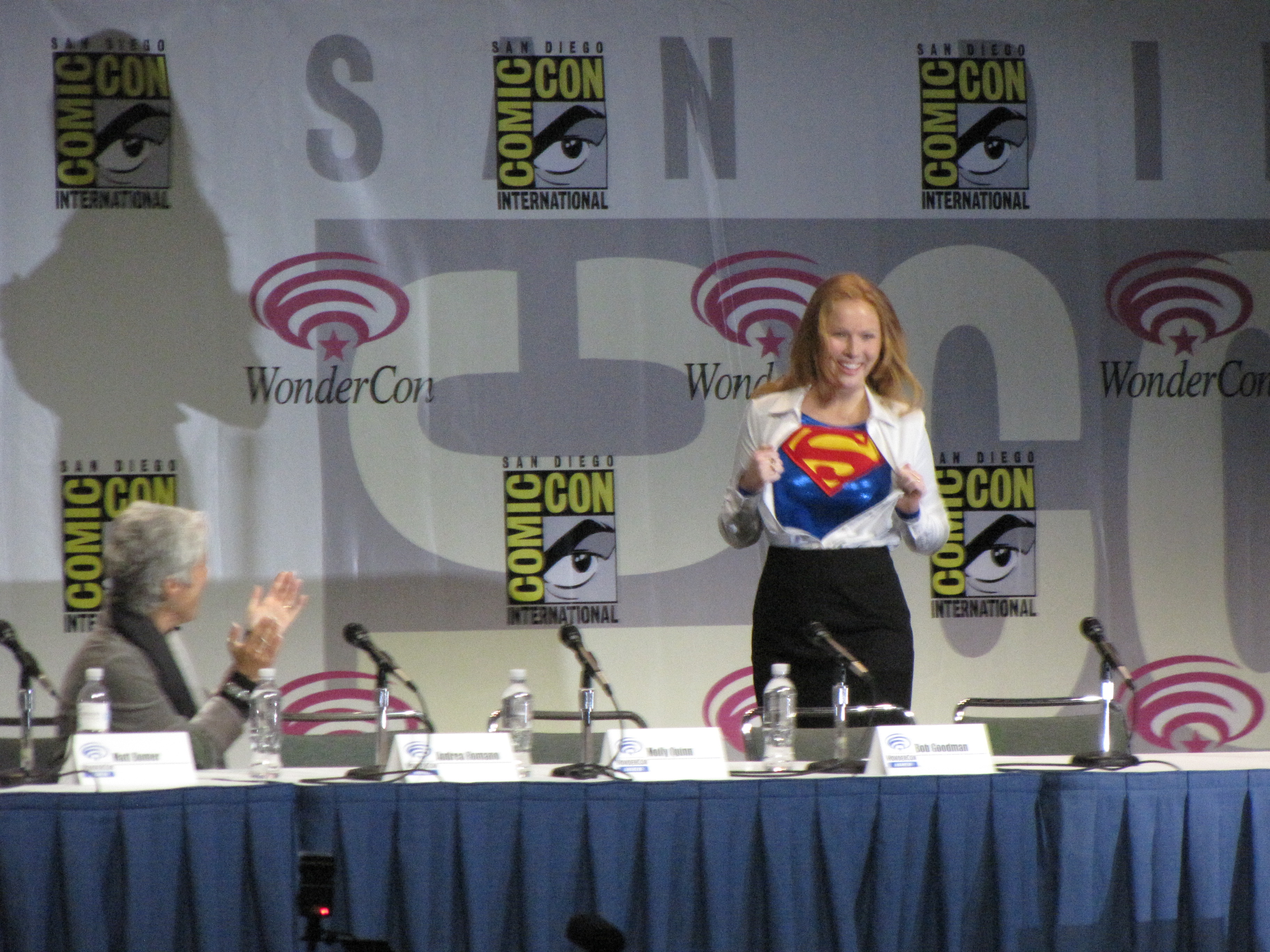 - Molly Quinn (Supergirl) showing her superhero pride during the panel.