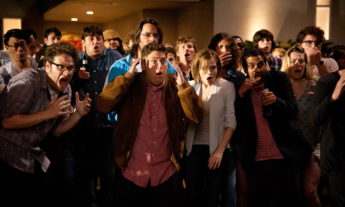 It’s not simply that the material isn’t funny; it’s that everything feels so extraordinarily lazy.  If this is meant to be a gentle teasing of its actors, there’s more you can mock James Franco for than collecting homoerotic art (and I think it’s time to retire the sudden appearance of a penis trope). There’s more you chide Michael Cera for than doing coke (Hey look! He’s just the opposite of what you’d think!). There’s something just wrong with including Baruchel, Hill, and Rogen, whose personalities and schticks, at least here, are indistinguishable from each other. Even the special effects look cheap. Every turn, surprise guest, cultural reference, and attempt at humor is already a well-established trope that was used more cleverly in previous films like Superbad and Pineapple Express — and, yup, the dance number and ironic use of a song was funnier in 40-Year-Old Virgin. This isn’t the kind of film that makes you whine, “They could have done more with this”; it’s the kind of film that makes wonder how they possibly could have done less.