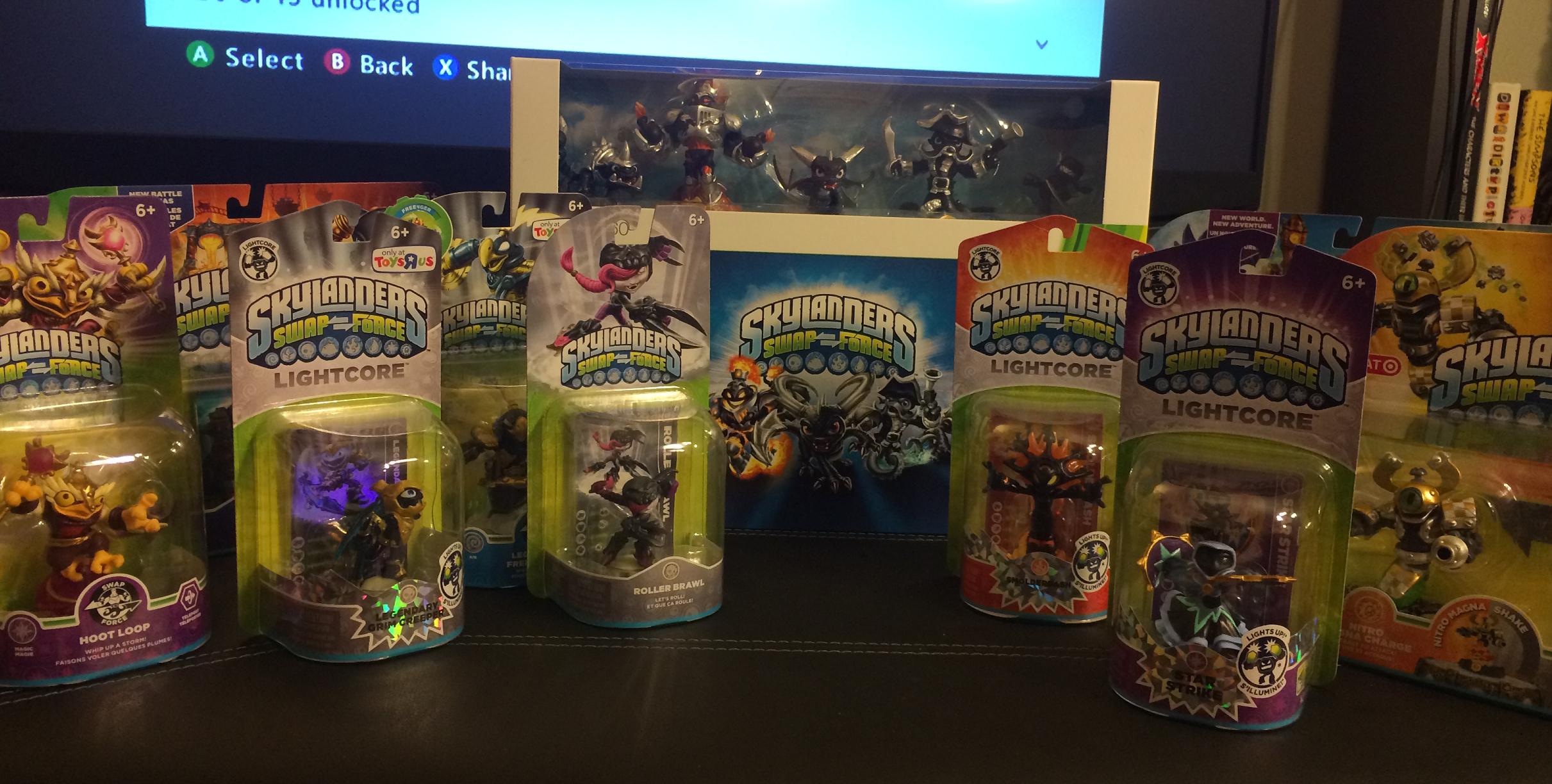 So as previously mentioned, yesterday was the new release for Skylanders SWAP Force. As expected, it was not a cheap endeavor. One special edition Starter Pack, one Adventure Pack, one Battle Pack, four SWAP Force, three Lightcore and one standard Skylander later and my tally between Gamespot, Toys R Us and Target had hit the $250 mark. Now, I am not complaining. I bring it upon myself and I enjoy it. That’s what the appeal of Skylanders is. Combine a video game with the ongoing geek desire to collect things and you have an addicting formula. And that’s why we have a fantastic unboxing video for you to check out to check out and help decide which Skylander SWAP Force starter set to get yourself.